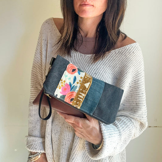 FOLDOVER CLUTCH- Floral/Mudcloth/Linen