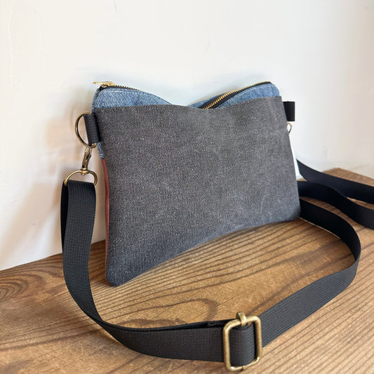 SMALL CROSSBODY - Denim + Charcoal Stonewashed