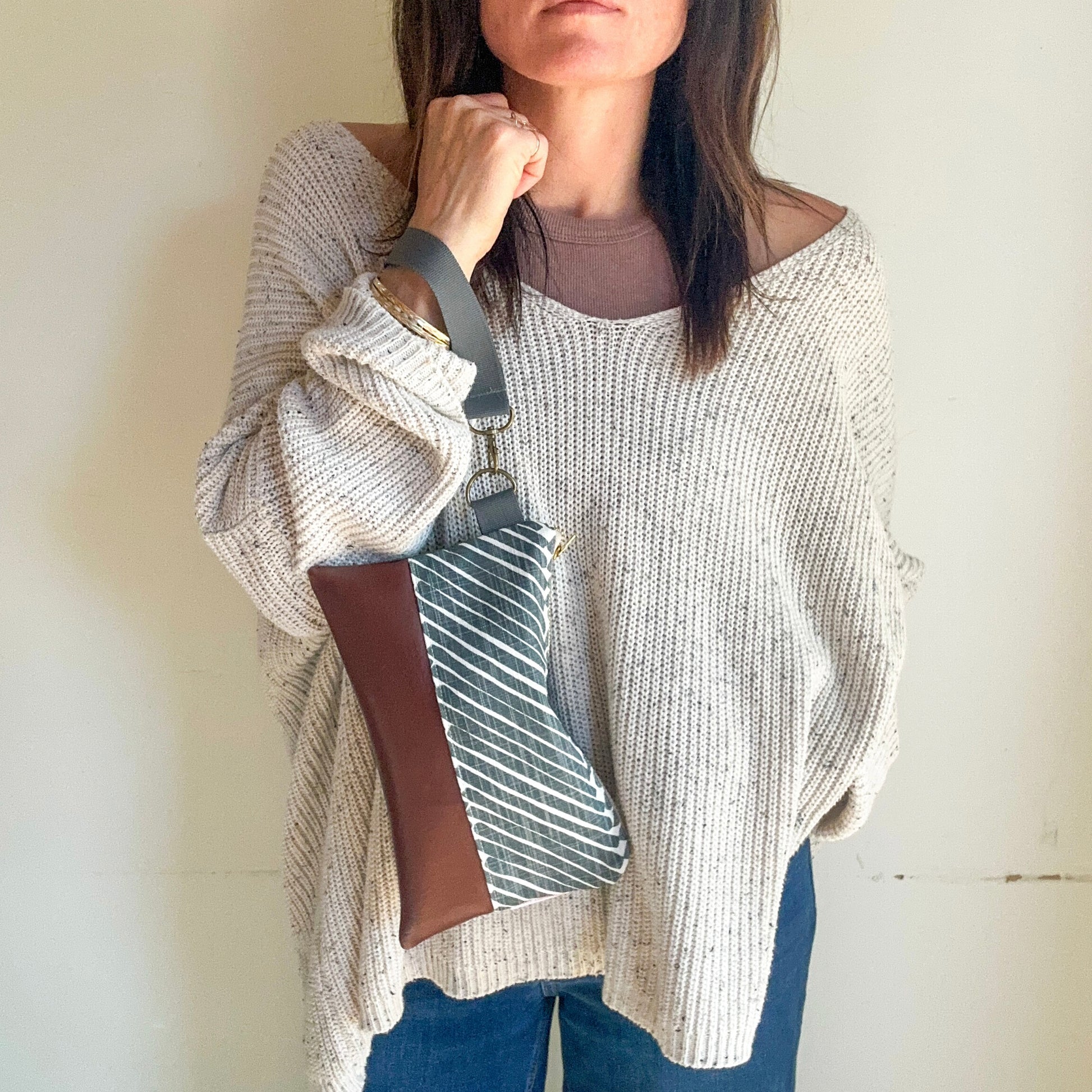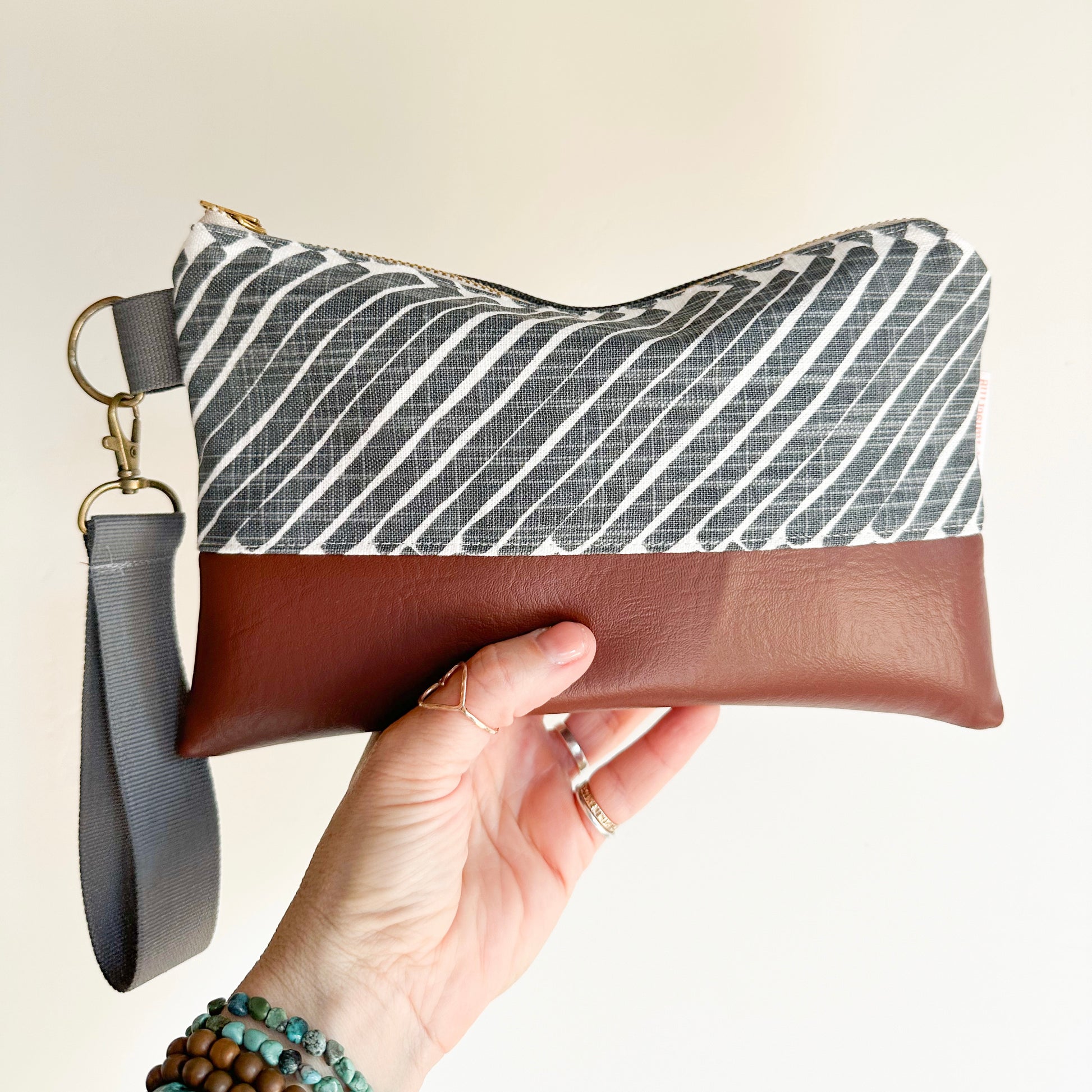 The Gray Zag Wristlet is a great on the go clutch. It is perfect to carry a handful of your smaller necessities, such as a small card wallet, phone, and a few smaller cosmetics. The detachable handle makes the Boho Wristlet easy to grab and comfortably carry on your wrist for easy access. Perfect for a night out, farmer’s market trips, or a day full of errands.